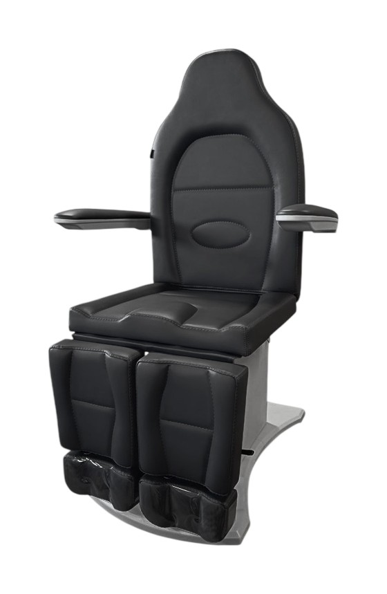 Педикюрное кресло оснащено двумя электромоторами, обеспечивающими регулировку высоты и угла наклона сиденья. Опоры для ног фиксируются при помощи газ-лифтов. Кресло легко раскладывается в горизонтальное положение, образуя ровную поверхность. Надежная конструкция системы подъема обеспечивает высокую устойчивость кресла даже при максимальной высоте. Управляется при помощи ручного проводного пульта. Дополнительно при производстве могут быть установлены различные опции.
