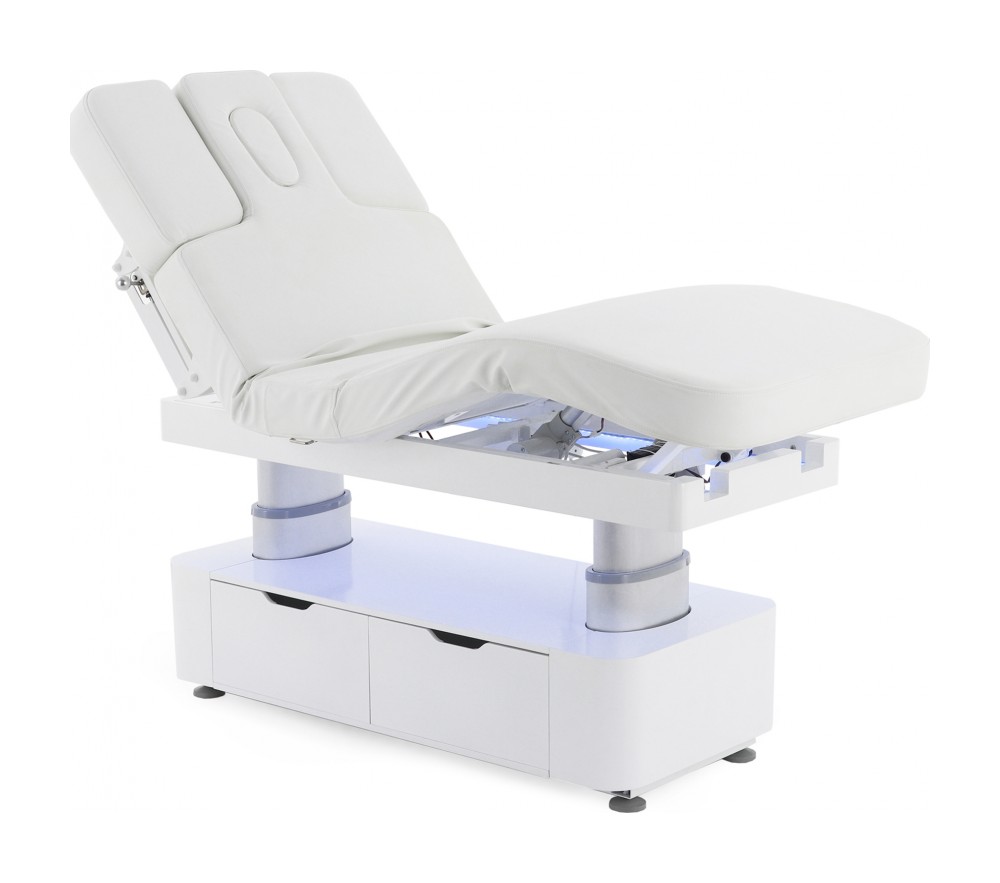 Этот массажный стол создан для профессионалов, которым важны надёжная конструкция, гибкая система регулировок и практичные элементы хранения. Благодаря телескопическим колоннам, нескольким электрическим приводам и декоративной подсветке он обеспечивает высокий уровень комфорта и удобства в использовании.