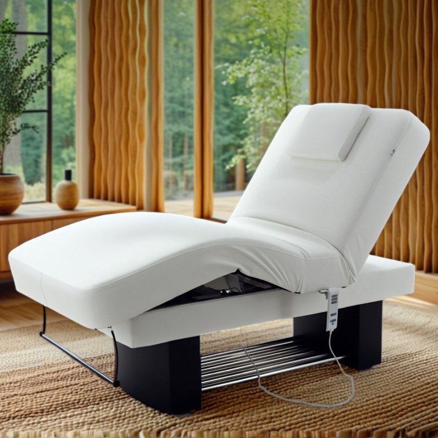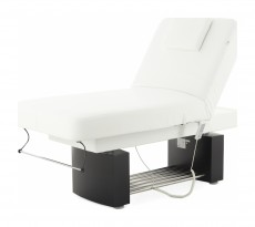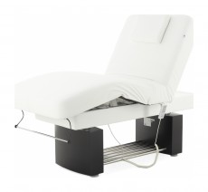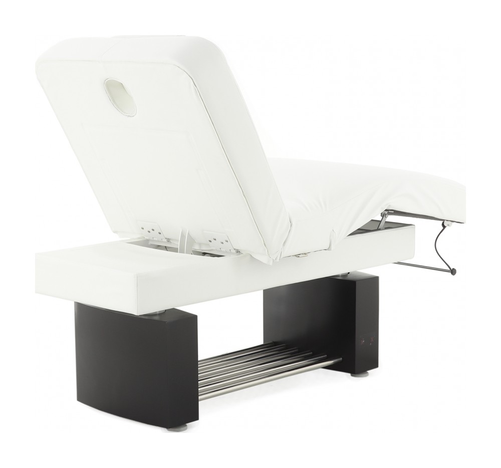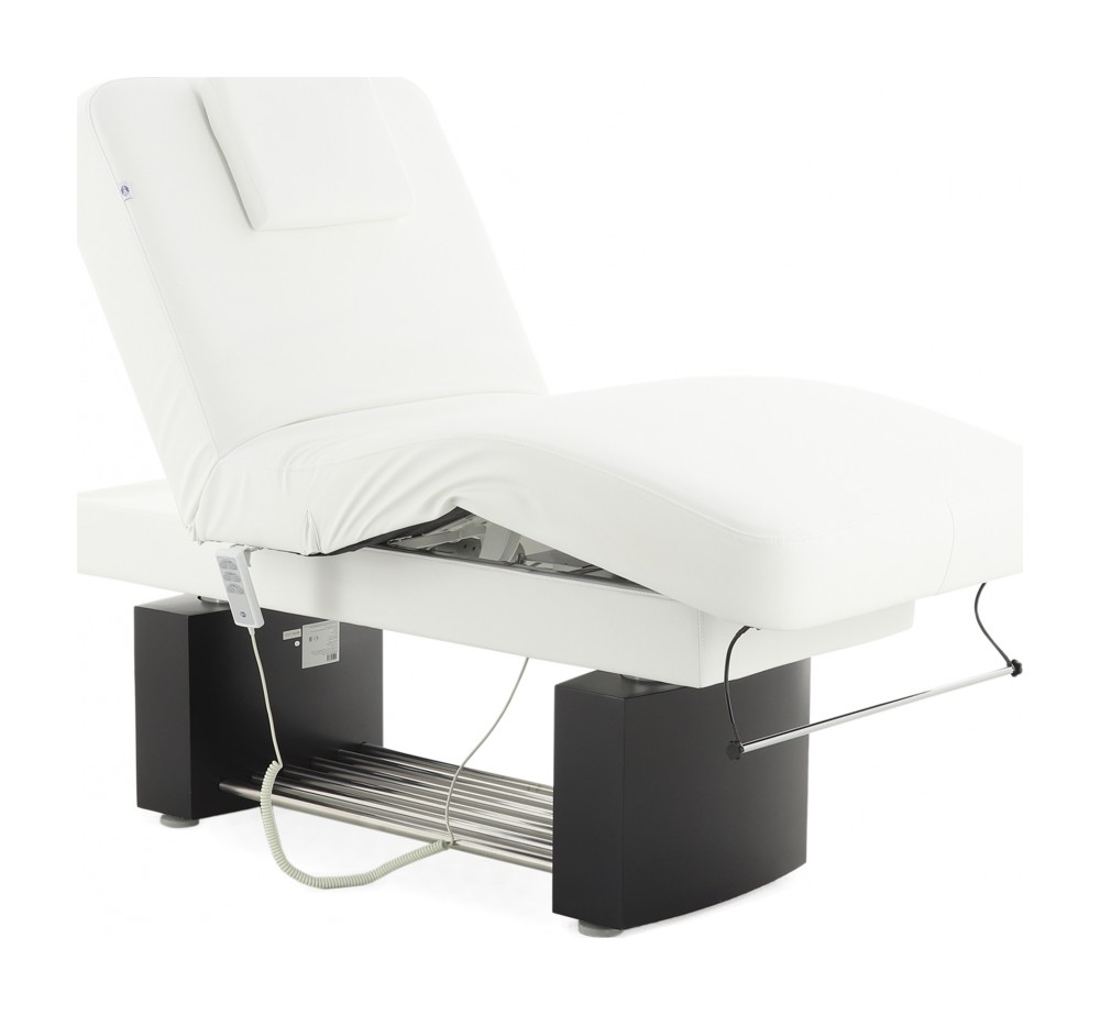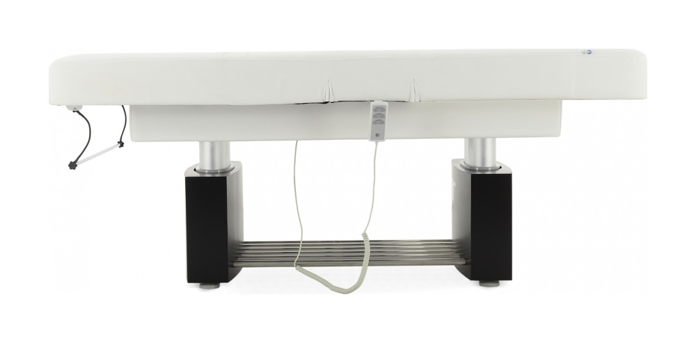 • Основание и приводы подъема ложа встроены в декоративную конструкцию из двух тумб, соединенных полкой из хромированных труб.