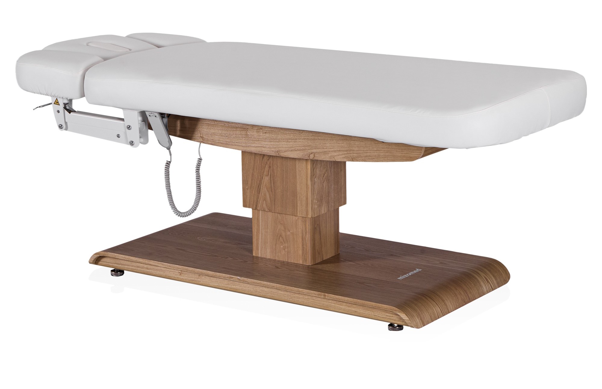 Olivia Basic оснащен тремя моторами, что позволяет точно регулировать высоту, спинку и подставку для ног. Толщина наполнителя 10 см обеспечивает максимальный уровень комфорта и расслабления. Это делает его универсальным инструментом для широкого спектра процедур, включая уход за лицом, кожей, телом и массаж.