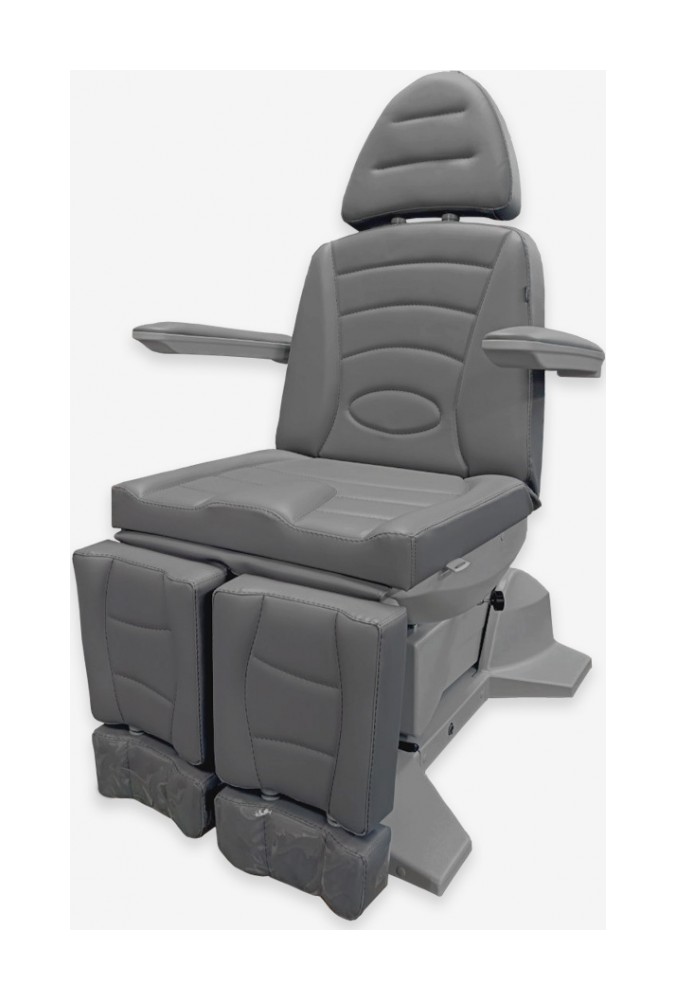 Педикюрное кресло оснащено пятью электромоторами, обеспечивающими регулировку высоты, наклона спинки, наклона сиденья и ножных опор. Кресло легко раскладывается в горизонтальное положение, образуя ровную поверхность. Надежная конструкция системы подъема обеспечивает высокую устойчивость кресла даже при максимальной высоте. Откидывающиеся подлокотники делают более удобным процесс посадки клиента. Управляется при помощи ручного проводного пульта.
